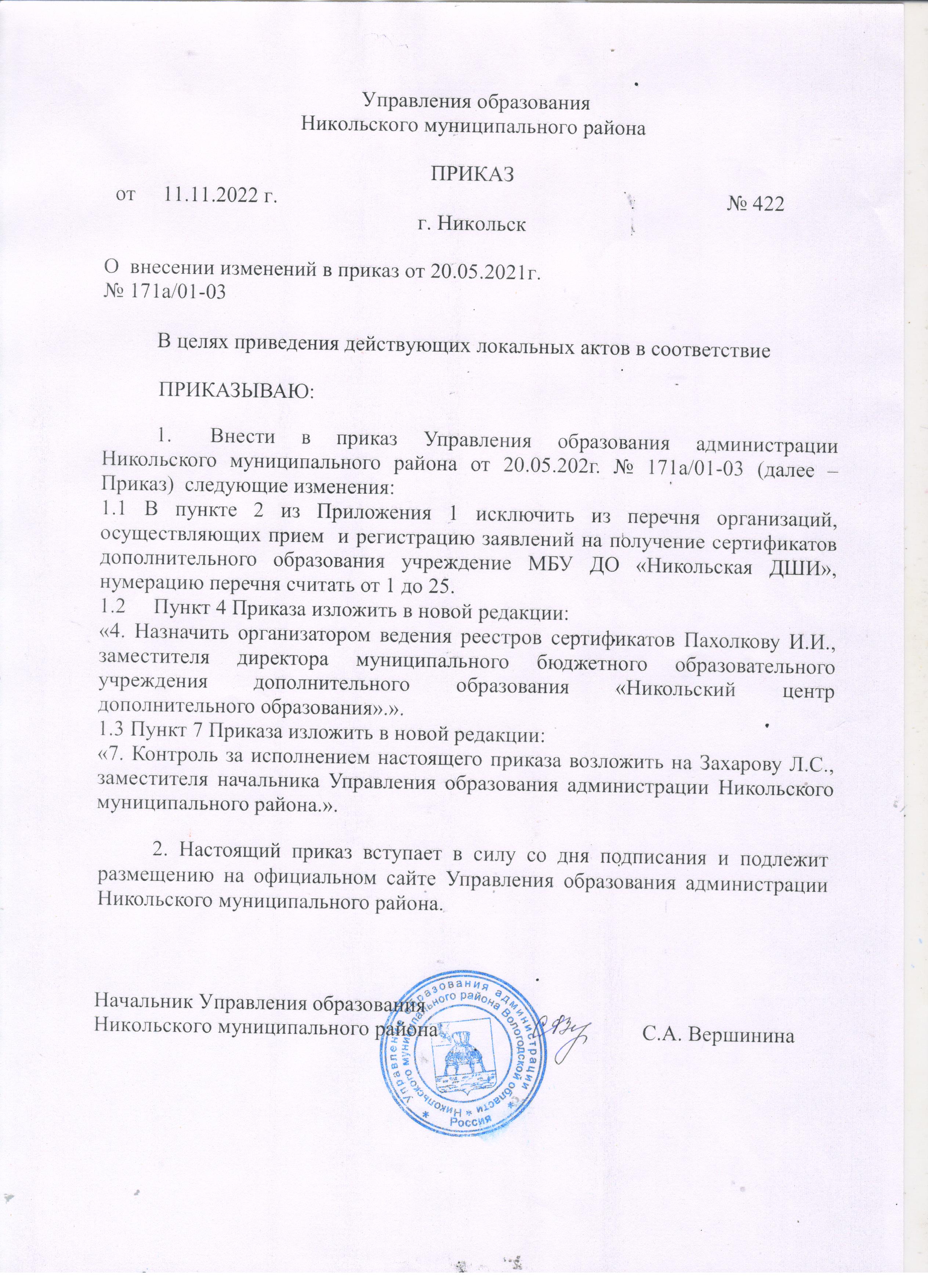 О внесении изменений в приказ от 20.05.2021г. №171а/01-03 | [Приказ УО от 11.11.2022г. №422] | 1005 Кб |
